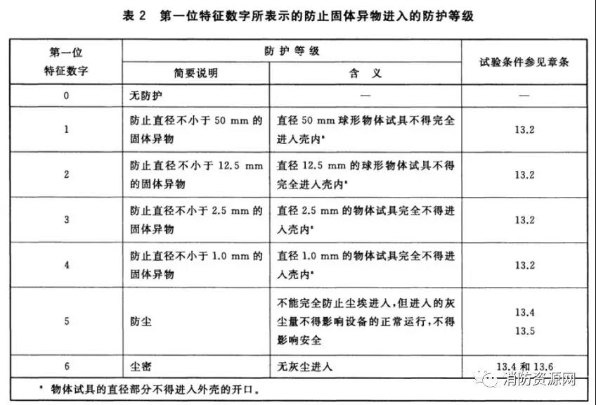 比如:《消防給水及消火栓系統技術(shù)規范》(GB50974)中:11.0.9 消防水泵控制柜設置在專(zhuān)用消防水泵控制室時(shí),其防護等級不應低于IP30;與消防水泵設置在同一空間時(shí),其防護等級不應低于IP55。