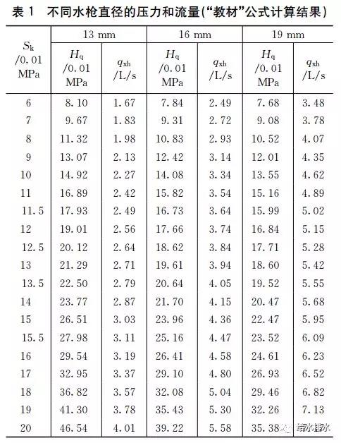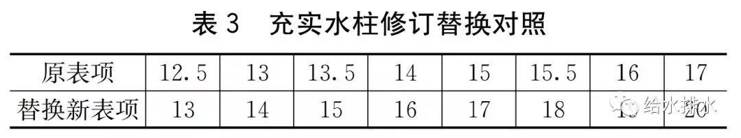 其一,估計是充實(shí)水柱中加入了12.5、13.5、15.5三個(gè)值,但未調整對應的流量和壓力值,導致后續計算結果錯位。若按表3的對照關(guān)系替換充實(shí)水柱數值后,除表2右下角(33.5)以外,其余均可與表1計算結果吻合。