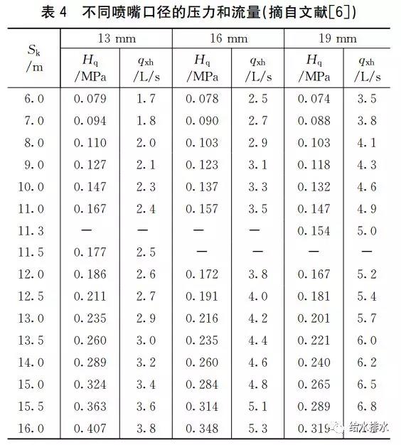 通過(guò)對比高等院校的專(zhuān)業(yè)教材和相關(guān)的設計手冊、措施中有關(guān)充實(shí)水柱所對應的壓力、流量值的數據,設計手冊、措施存在印刷錯誤的可能性較大,建議再版時(shí)核實(shí)后修訂。若非印刷錯誤,而是采用了不同的公式,建議注明公式以便于使用。