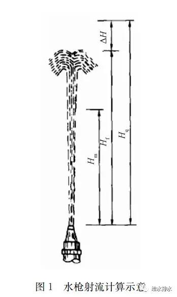 由充實(shí)水柱高度推求噴口所需水壓時(shí)需要用到一個(gè)與水槍噴口直徑有關(guān)的試驗系數φ,根據試驗結果得到的計算公式為φ=0.25/df+(0.1df)3(其中,df為局部水頭損失)。如圖1所示,對Hq的直觀(guān)感覺(jué)是標注在水槍噴嘴處,而非水槍入口處,即為水槍噴嘴處的壓力,而非水槍入口的壓力。而且從能收集到的資料無(wú)法求證此φ值是否已經(jīng)包含了水槍的局部水頭損失,有可能只是克服空氣阻力的損失。
