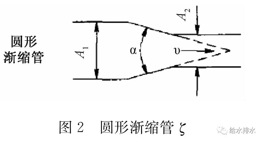 假定φ值未包含水槍的局部水頭損失,參考《水力計算手冊》(第2版)第10頁(yè)圓形漸縮管的公式計算水槍的水頭損失(見(jiàn)圖2)。