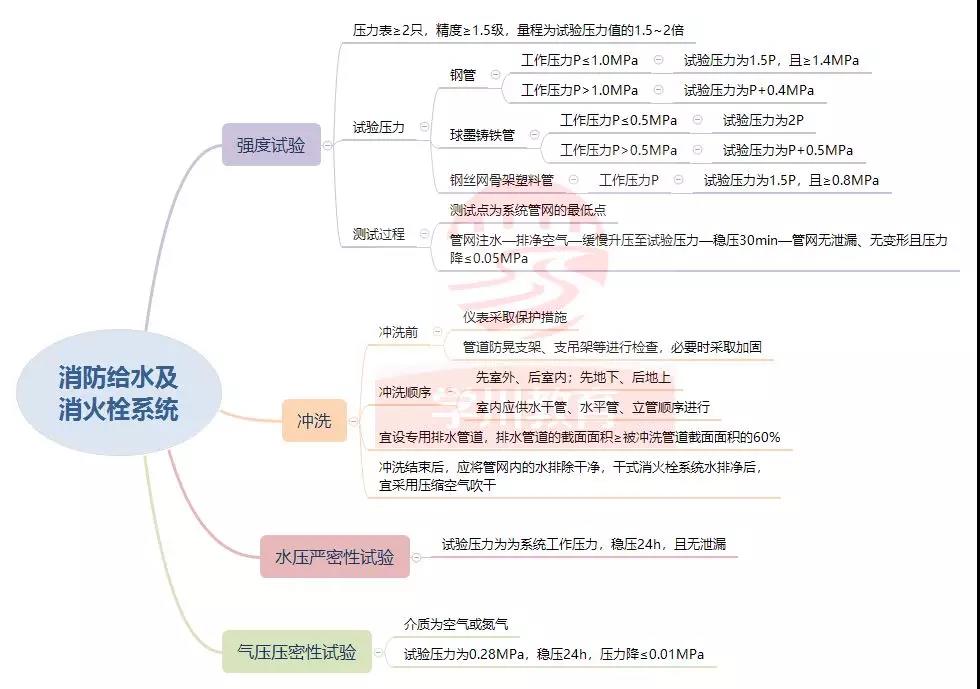 2. 強度試驗和嚴密性試驗宜用水進(jìn)行,干式噴水滅火系統、預作用噴水滅火系統應做水壓試驗和氣壓試驗。